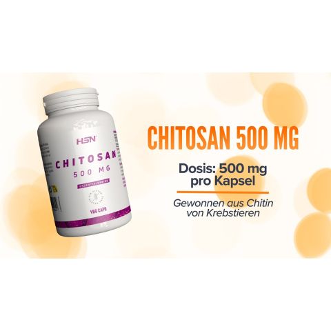 Chitosan. Aus Chitin von Krustentieren. GVO-frei. Hohe Konzentration. 500 mg pro Kapsel.