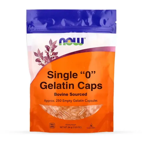 Leere Gelatinekapseln '0' von Now Foods sind ein Produkt aus leeren Kapseln aus Rindergelatine.
