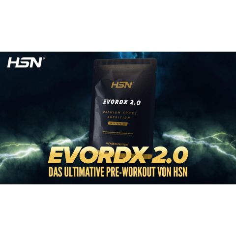 Genieße Evordx 2.0: Das klassische Pre-Workout von HSN mit Stimulanzien.